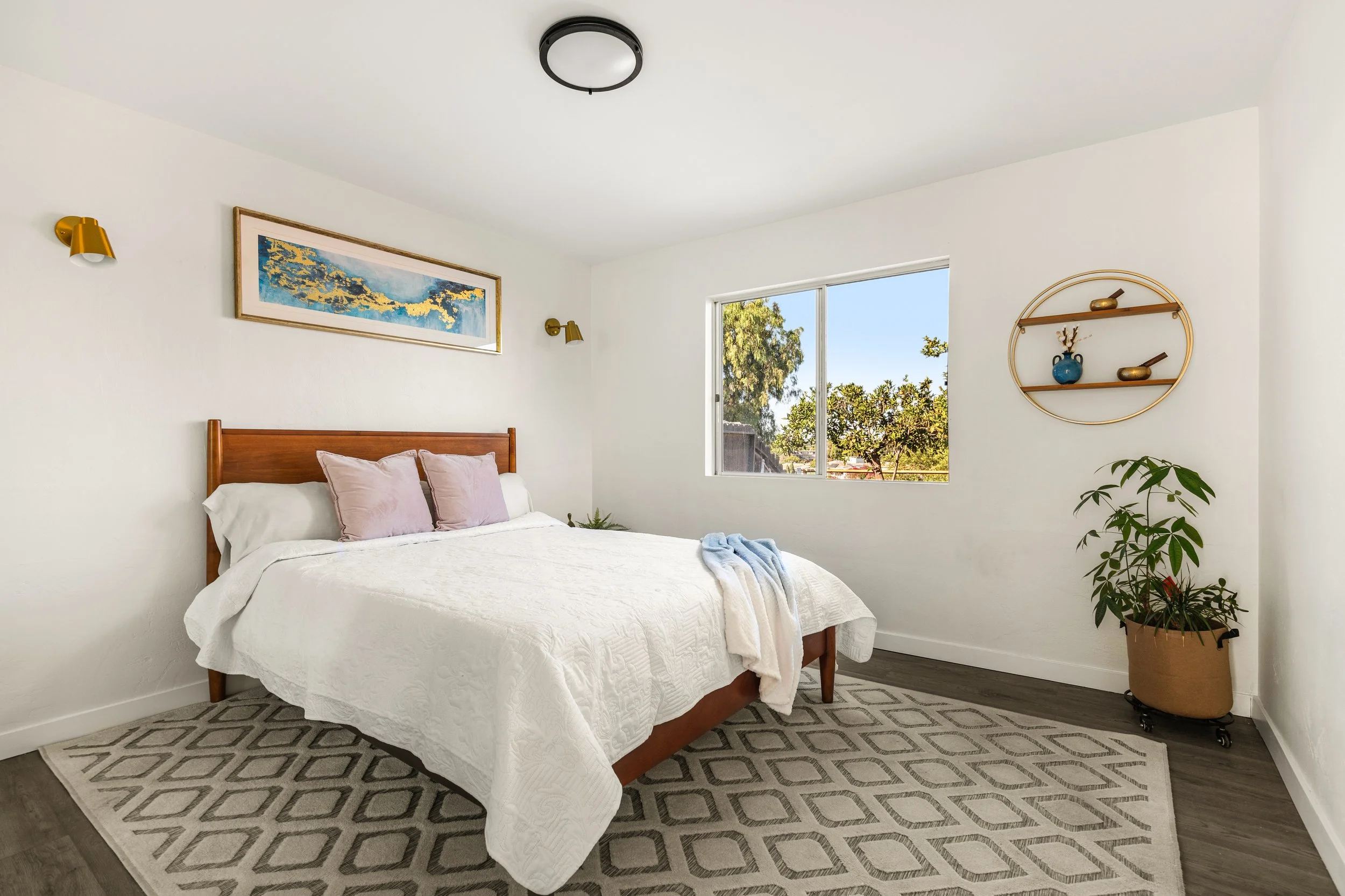 Discover this turn-key residence located on a quiet cul-de-sac in Redwood Village. Positioned on an expansive 8,300 sqft lot, this home has endless potential for ADU development. A creative owner could also reconfigure the layout of this charming home to create two units within the existing footprint. The home has been freshly updated with luxury vinyl plank flooring, new interior and exterior paint, recessed lighting, a fresh new bathroom, complemented by a beautifully landscaped front and backyard with multiple citrus trees. The generous lower-tiered yard space provides a superb canvas for further development, offering an excellent opportunity for rental income. Conveniently located near San Diego State University, this property is also close to shopping, dining, parks, and more.